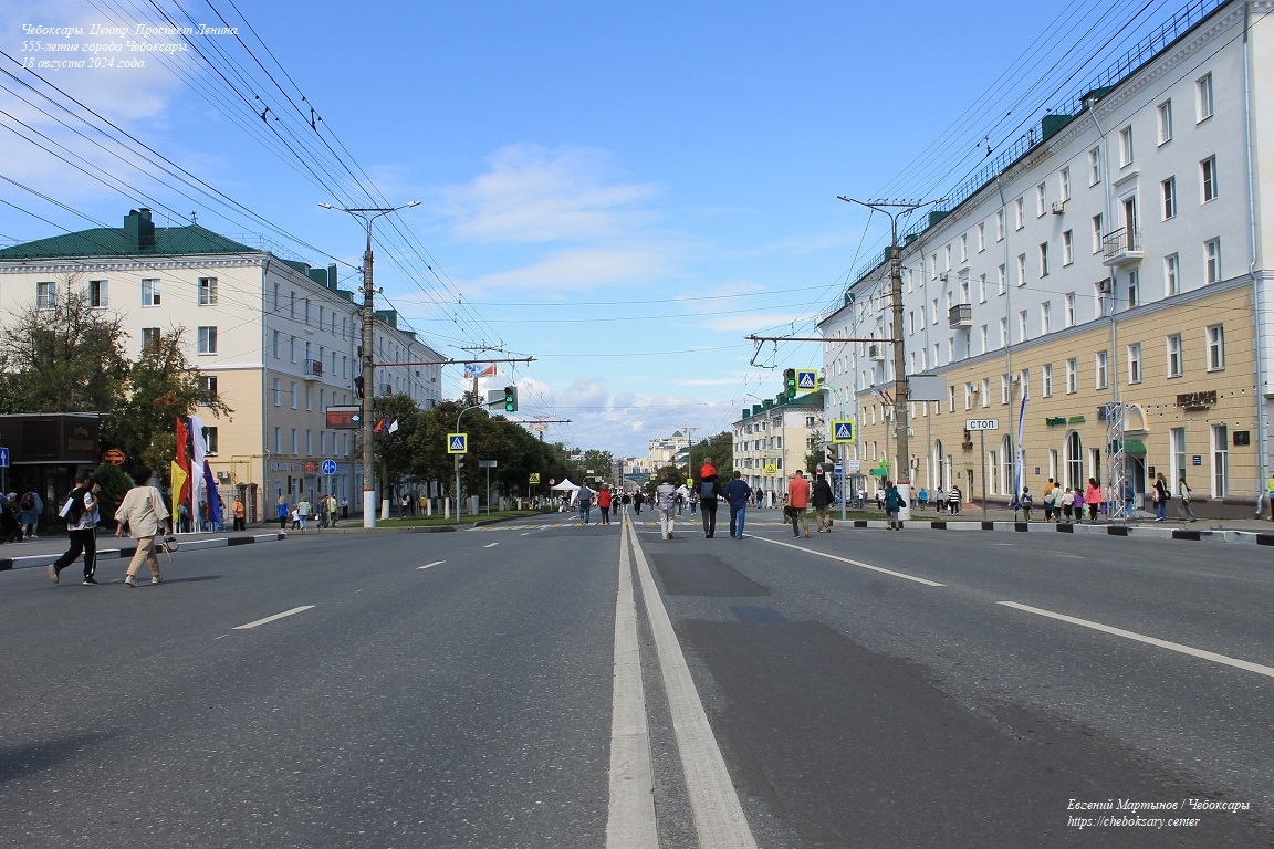 На время празднования частично была перекрыта центральная часть города - проспект Ленина (от перекрестка с улицей Гагарина вплоть до Чебоксарского главпочтамта) и полностью - улица Карла Маркса. На фотографии - проспект Ленина в районе ТЦ “Детский”.