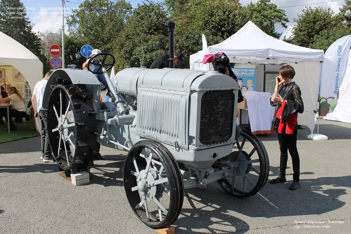 Во второй половине дня на перекрытых улицах был организован арт-проект под названием “Творческий бульвар”. Здесь было проведено большое количество действий - конкурсы, небольшие выставки, мини-концерты, представления танцевальных групп, выступления спортсменов. На фотографии - старинный советский трактор “СХТЗ 15/30” (по всей видимости, экземпляр был предоставлен Научно-техническим музеем истории трактора, г. Чебоксары).