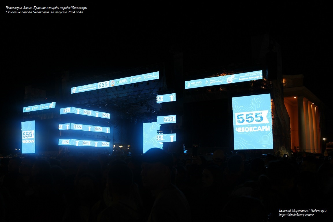 Поздним летом 2024 года Чебоксары отметили знаменательное событие - 555 лет с начала официального основания города. Отдельные мероприятия, посвященные этой круглой дате, проходили на территории города в течение всего летнего периода. Однако, ключевые праздничные события в честь юбилея города, состоялись 18 августа - в традиционный День города Чебоксары (третье Воскресенье августа). Днем, над Чебоксарским заливом, прошло выступление авиационной группы высшего пилотажа “Стрижи”, вечером - на Красной площади столицы Чувашии выступил популярный российский исполнитель SHAMAN. Планировавшийся ранее праздничный салют был отменен в связи с событиями в Курской области.