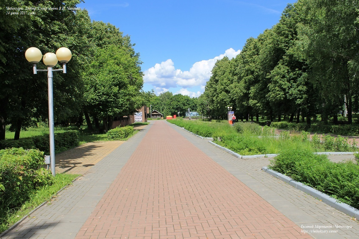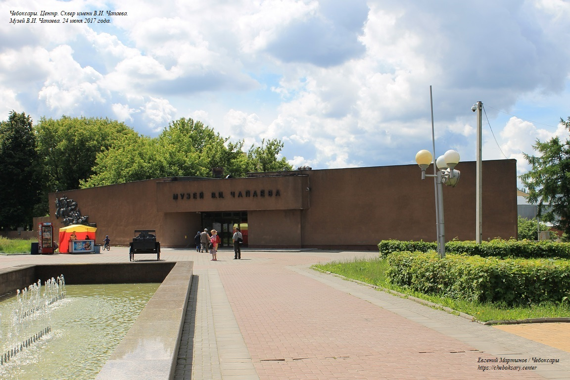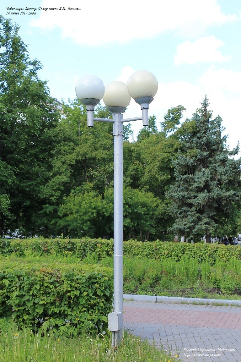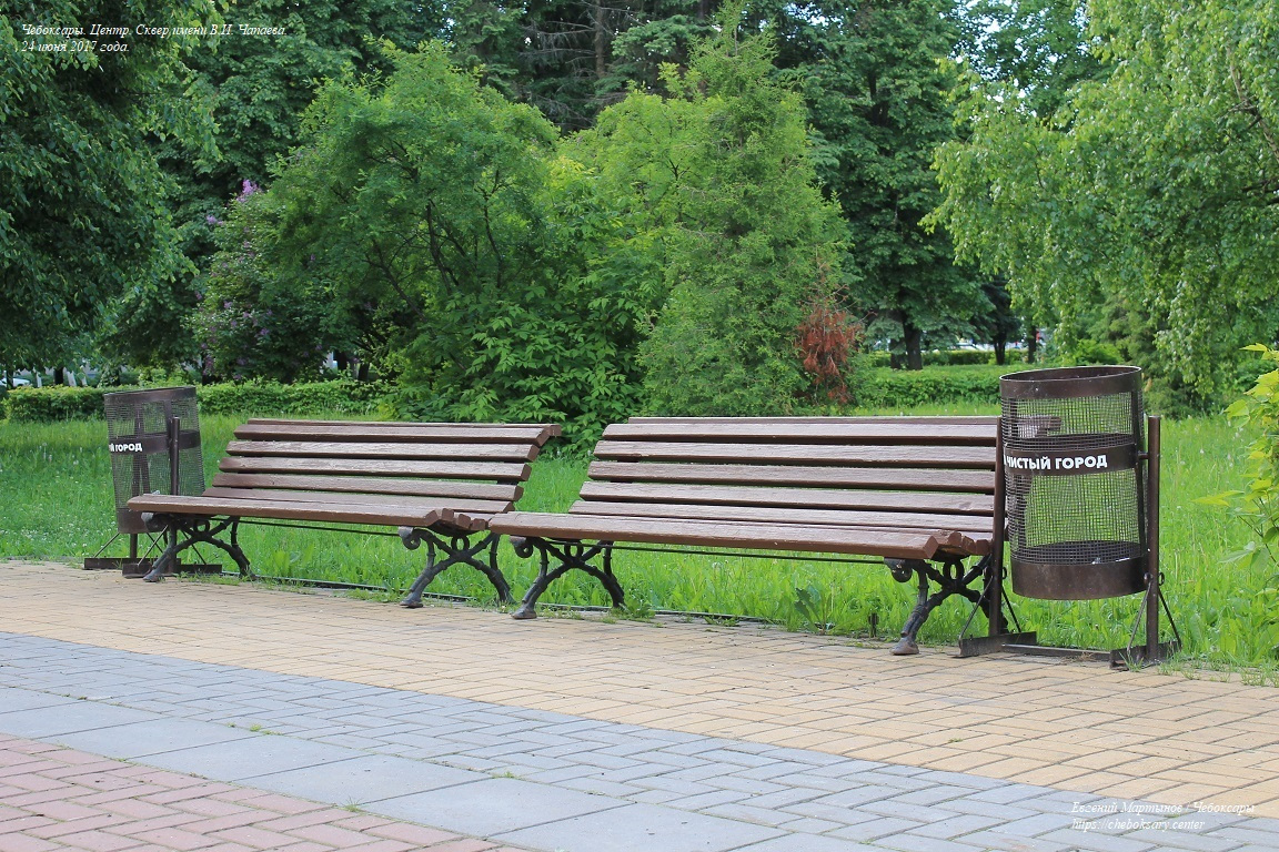 Также все нижние фотографии. Сквер имени В.И. Чапаева (в городском просторечии - “Сквер Чапаева”) - пожалуй, самый известный чебоксарский сквер. Расположен в центральной части города, неподалеку от Чебоксарского железнодорожного вокзала, и идет параллельно проспекту Ленина. Сквер хорошо зарекомендовал себя как место для “спокойного” отдыха чебоксарцев - в дневное время здесь можно заметить немало прогуливающихся молодых парочек, уже состоявшихся семейных пар и людей старшего возраста; вечером скамейки “оккупируют” группы молодёжи. Все фотографии сделаны 24 июня 2017 года.
