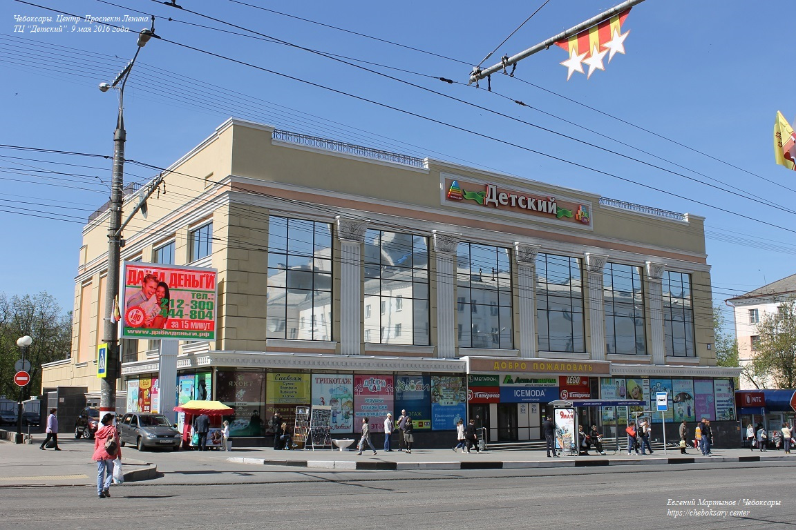 Торговый центр “Детский” (до реконструкции 2011 года был известен как “Детский мир”; официальный адрес - пр. Ленина, 26). В здании, помимо магазина детских игрушек, располагаются и другие торговые площадки, включая универсам “Пятерочка”.