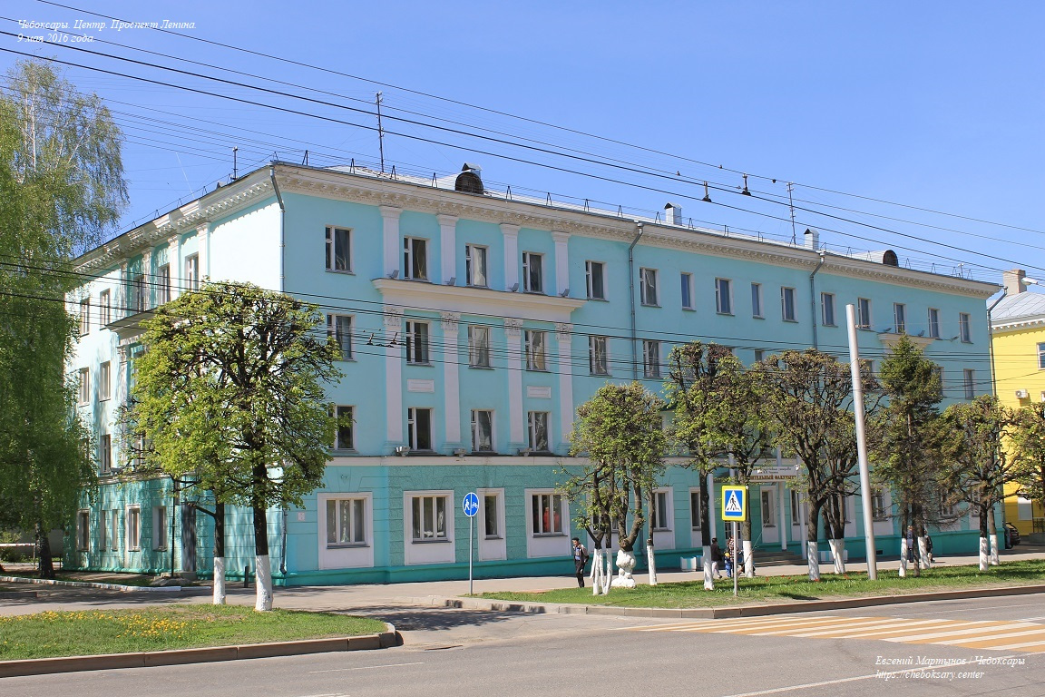 В этом здании располагается Строительный факультет Чувашского Государственного Университета (ЧГУ им. И.Н. Ульянова).