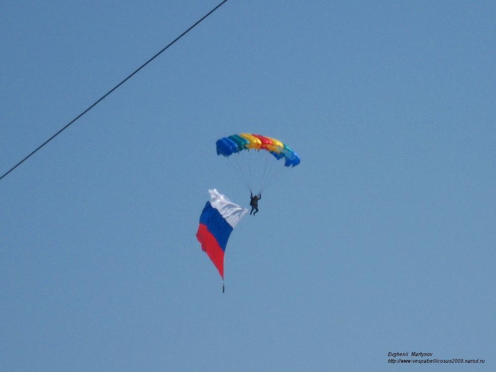 Также две нижние фотографии. С неба выступление “поддержали” парашютисты. Зрелище было достаточно впечатляющим.